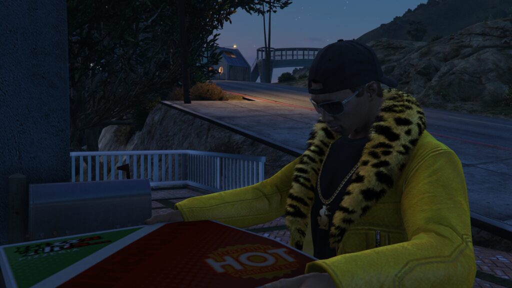 ピザ配達用のバイクに乗り込み、熱いピザを複数の家に配達する副業です。