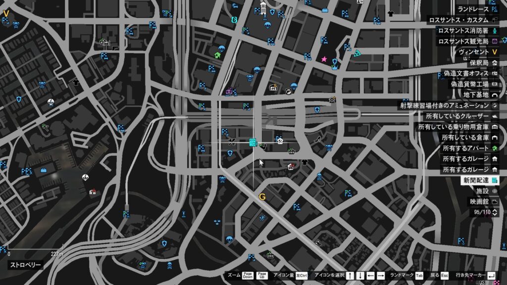 配達を開始すると、5つの配達場所がマップに表示されます。