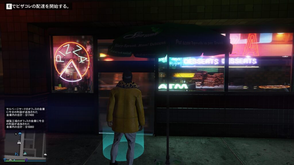 ピザコレの前にマーカーがあるので、そこでピザ配達を開始しましょう。