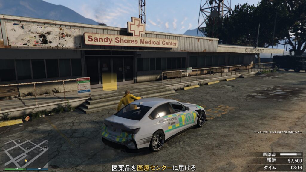 建物の前にマーカーがあるので、そこで医薬品配達を開始しましょう。
